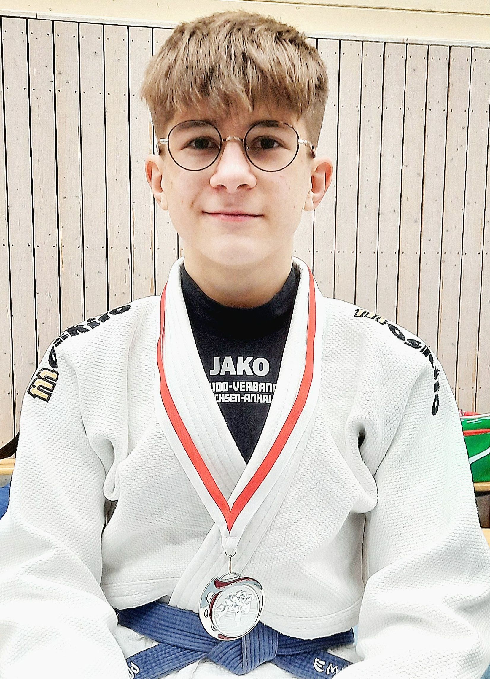 Für Emil ging es am Sonntag, den 08.12.2024 nach Brandenburg zum 30. Weihnachtsturnier des Judovereins Königs Wusterhausen/Zernsdorf. Im vergangenen Jahr noch als Zuschauer, wollte er diesmal auch aktiv in das Geschehen eingreifen. Bevor es jedoch losging, traf man auf einen "alten" Bekannten. Dmytro war bis zu seinem Wechsel an die Sportschule nach Frankfurt/Oder, zum Beginn dieses Schuljahres, in Dessau aktiv. Emil startete in der U15 mit dem Gewichtslimit von 60kg in das Turnier, war dort aber mit knapp 56kg eines der Leichtgewichte. Unabhängig davon konnte er sich aber in seinen 4 Kämpfen durchsetzen und am Ende die Goldmedaille in Empfang nehmen.