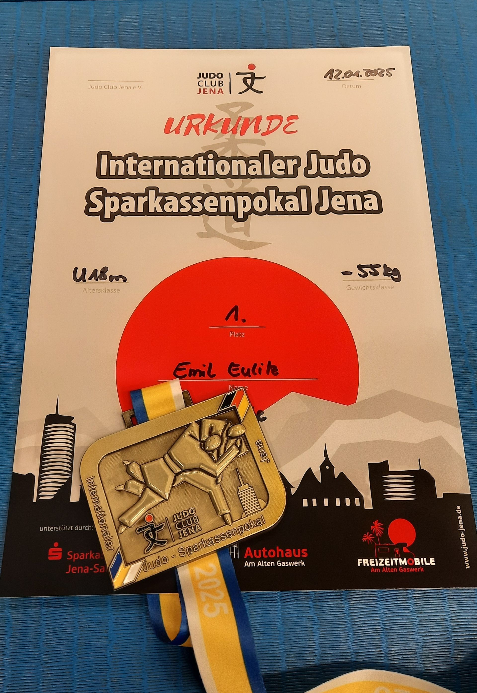 Zum 30. Mal fand am 21.04.2025 das Internationale ASVÖ Osterpokalturnier im österreichischen Kufstein statt. Unter die über 430 Teilnehmer aus 75 Vereinen und 7 Ländern mischte sich aus Dessauer Sicht auch Emil Eulitz. In seinem Auftaktkampf wartete direkt der drittplatzierte der Österreichischen Meisterschaften U16. Somit war gleich von Beginn an Konzentration gefordert. Durch einen schnellen Stand/Bodenübergang konnte sich Emil einen Vorteil verschaffen und anschließend seinen Gegenüber durch eine Hebeltechnik zur Aufgabe zwingen. Auch die weiteren Kämpfe liefen erfolgreich und so ging es bis ins Finale. Die normale Kampfzeit reichte hier nicht aus und so ging es in den GoldenScore. Beide Kontrahenten schenkten sich nichts und beide hätten auch den Sieg verdient gehabt. Emil hatte das bessere Ende aber für sich und konnte seinen Gegner mit einer Fußtechnik werfen. Somit konnte er sich über einen tollen Pokal an diesem Ostermontag freuen.